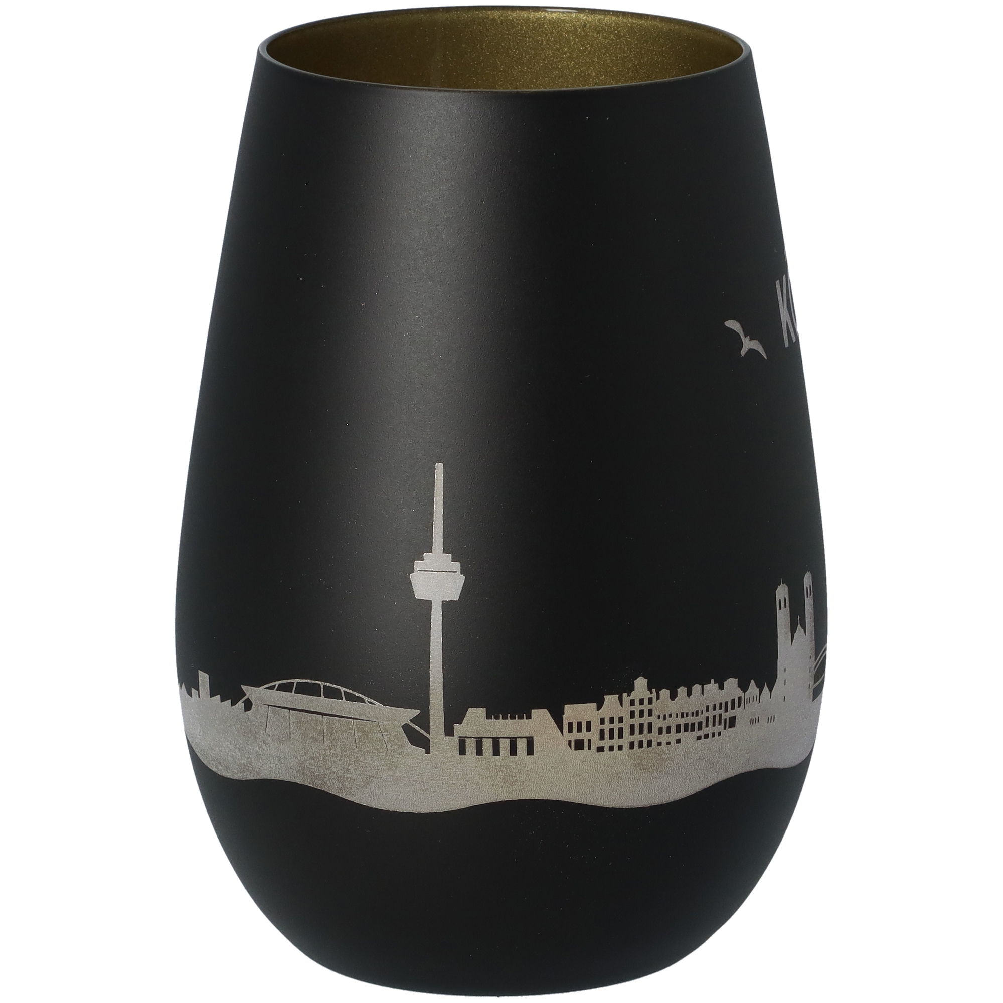Die perfekte Geschenkidee ist unser Windlicht mit einer rundum Gravur von der Kölner Skyline, welche mit Kerzenlicht extra heraussticht.